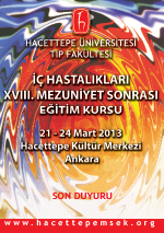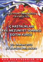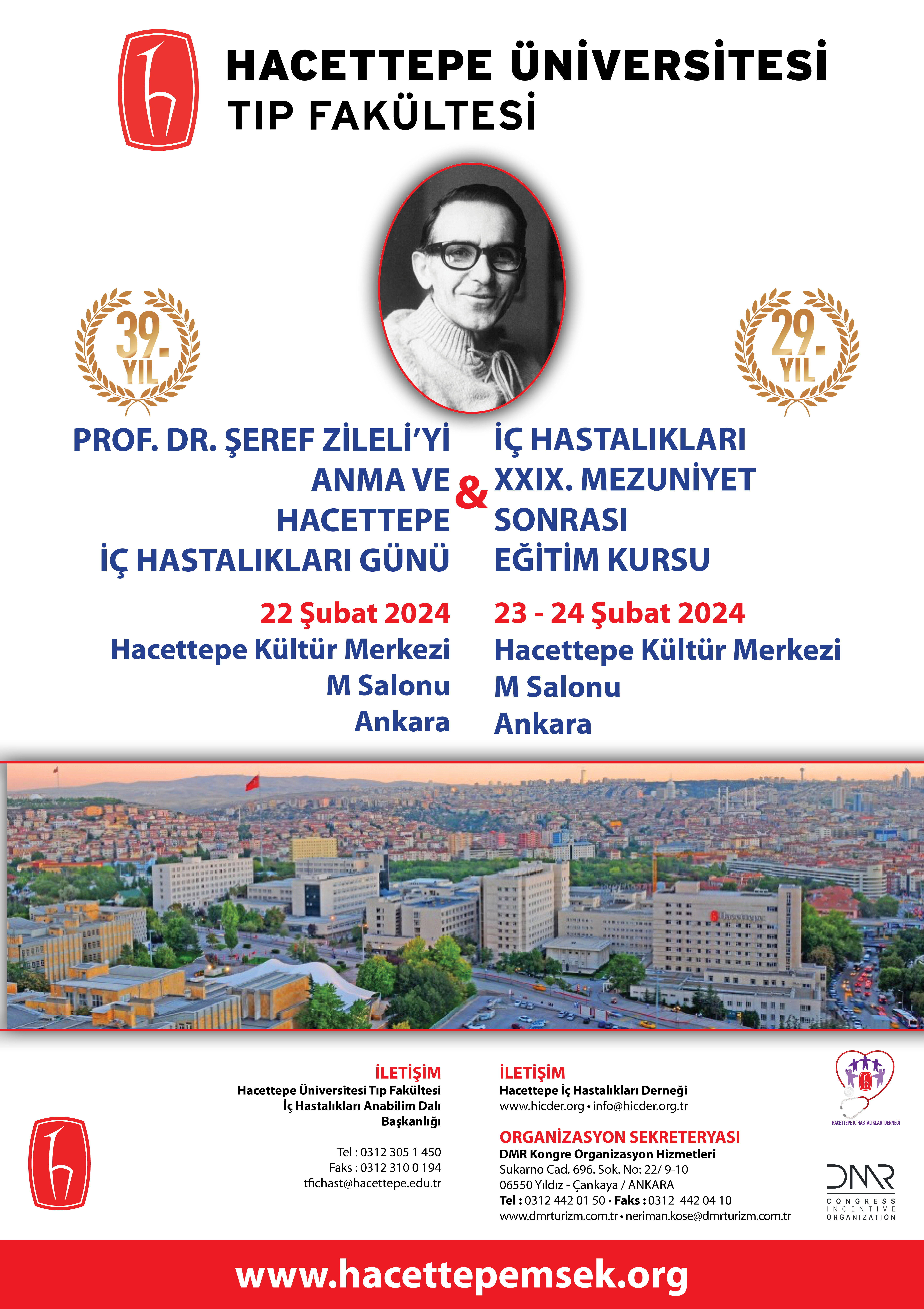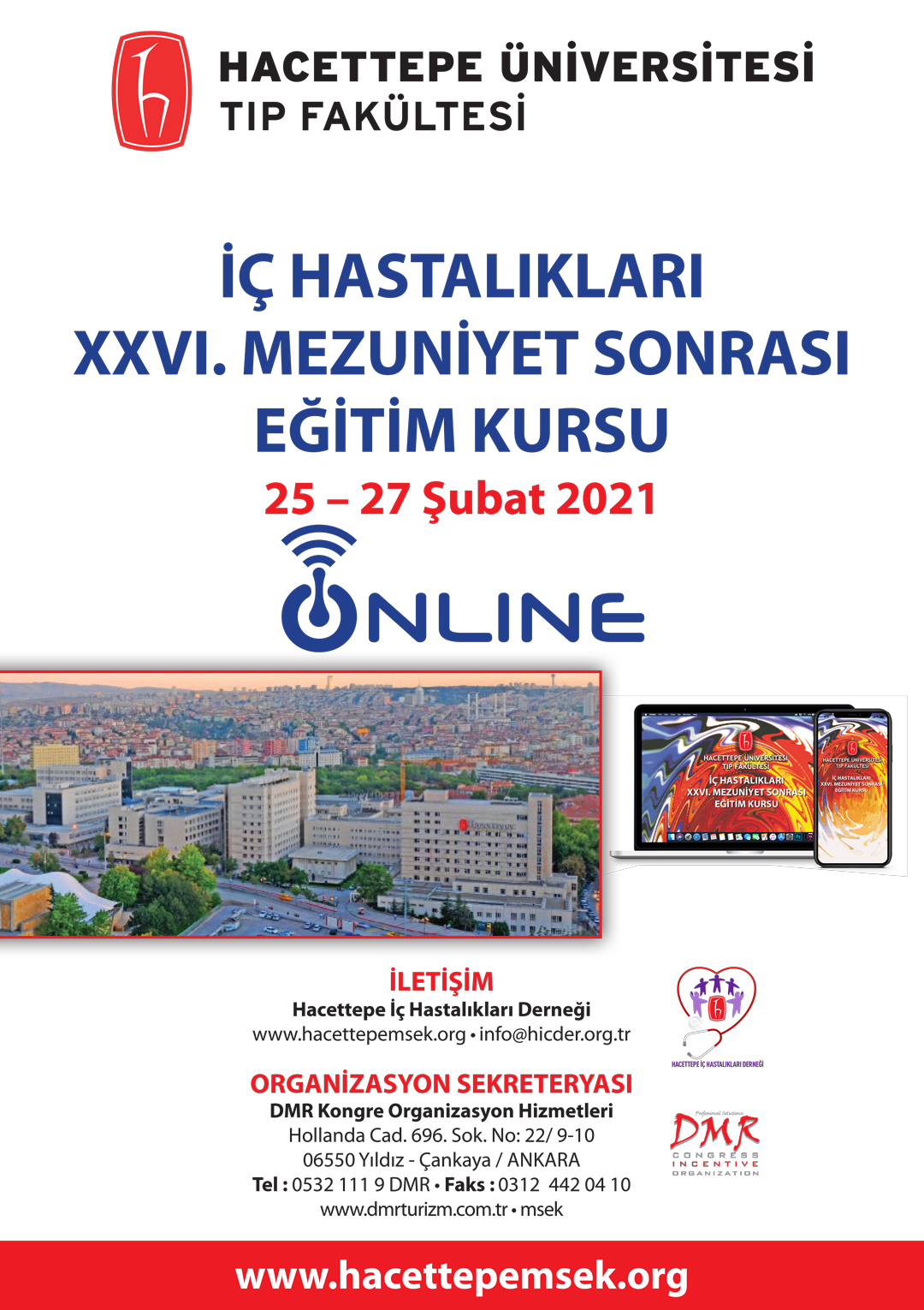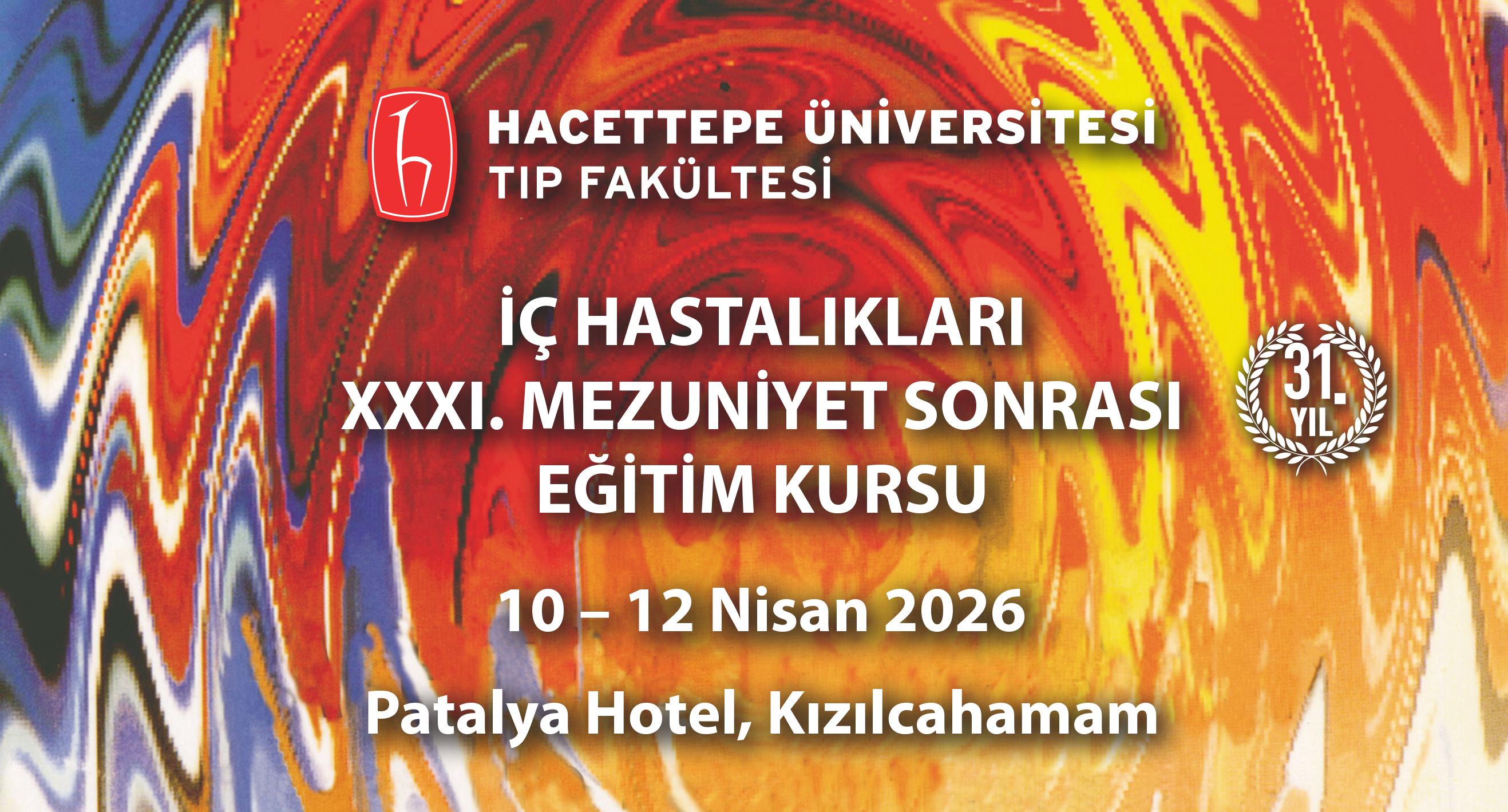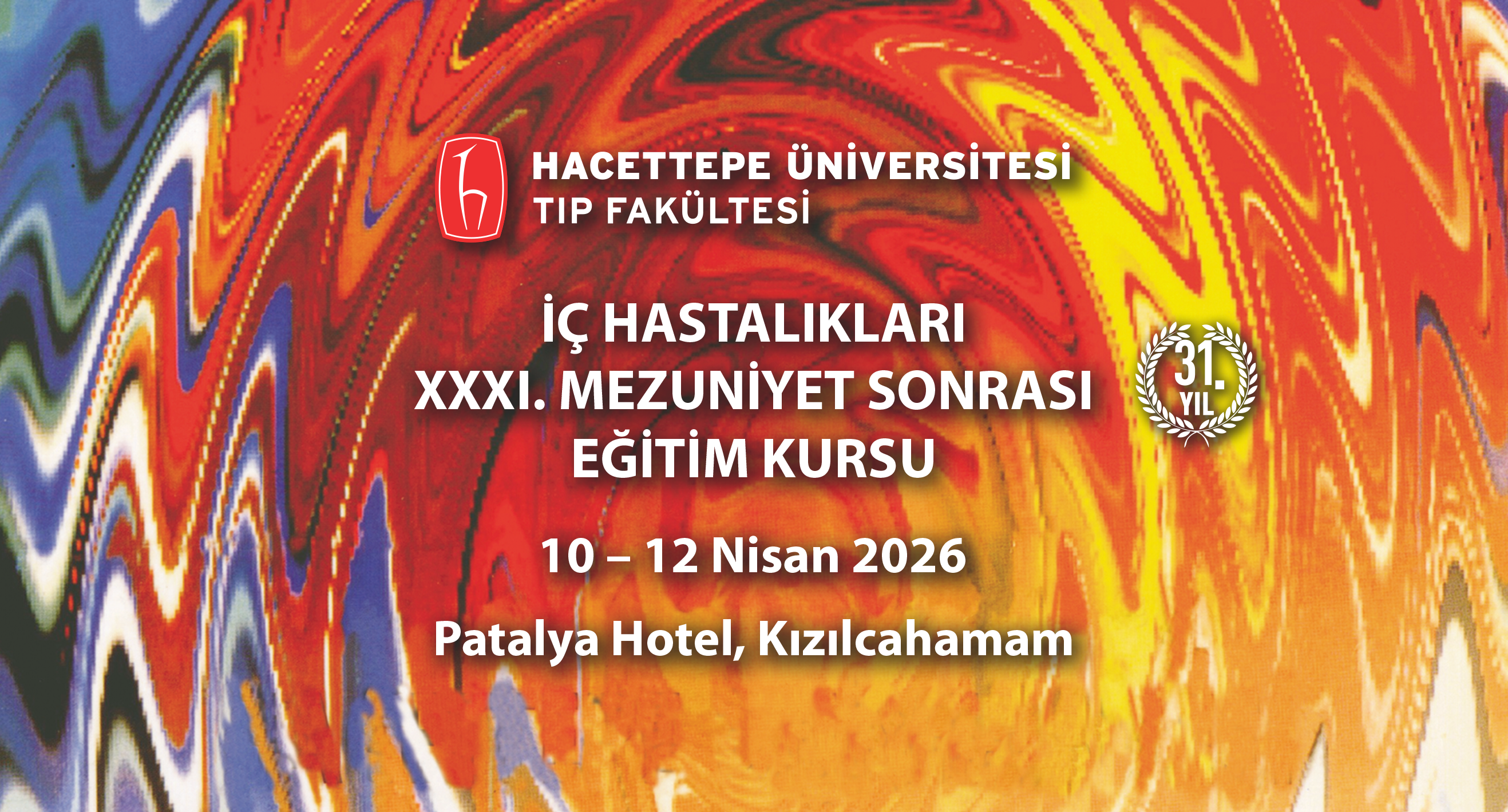 Hacettepe İç Hastalıkları, Kardiyoloji, Göğüs Hastalıkları ve Enfeksiyon Hastalıkları Anabilim Dalları olarak düzenlediğimiz 31. İç Hastalıkları Mezuniyet Sonrası Eğitim Kursu’nu, 10 – 12 Nisan 2026 tarihleri arasında Patalya Hotel, Kızılcahamam’da gerçekleştireceğiz. Toplantımız, koronavirüs önlemleri kapsamında fiziki mesafe göz önünde bulundurularak, kültür merkezimizdeki en büyük salon olan M salonunda yapılacaktır.